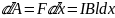 При перемещении перемычки вправо из положения 1 в положение 2, расстояние между которыми равно dx, сила