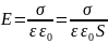 Если площадь обкладки S, а заряд на ней q, то напряжённость поля между обкладками равна: