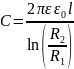 Если пренебречь рассеяние поля вблизи краёв обкладок, нетрудно получить для ёмкости цилиндрического конденсатора формулу: