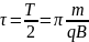 движения частицы в каждом из дуантов равно половине периода T обращения частицы по окружности и не зависит от скорости частицы: