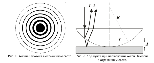 . Линии постоянной разности хода представляют собой концентрические окружности с центом в точке соприкосновения. Запишем условие минимума освещенности: