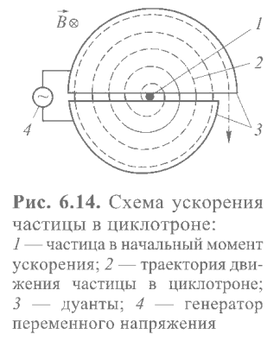 – подбирается так, чтобы к моменту выхода частицы из дуанта полярность напряжения сменилась. Это условие выполняется, если циклотронная частота