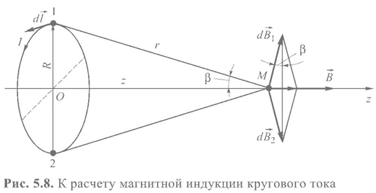 представляют собой вектор, направленный вдоль оси z кругового тока. Поэтому и результирующая индукция магнитного поля всех элементов кругового тока