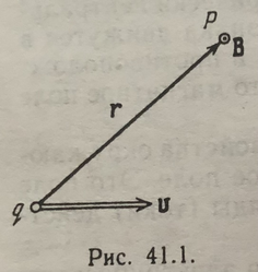 Рассмотрим магнитное поле, создаваемое в некоторой точке P точечным зарядом q, движущимся с постоянной скоростью