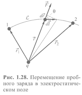 , не должна зависеть от формы пути перемещения пробного заряда в таком поле из точки 1 в точку 2: