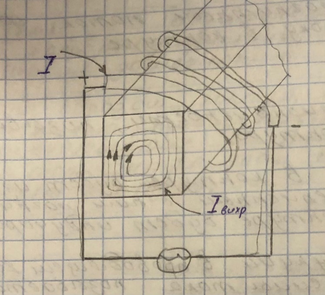 Ответ: Вихревые токи возникают в плоскостях перпендикулярных основному магнитному току, т.е. магнитному полю созданному проводником с током I.