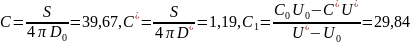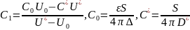 Используя формулы, приведенные ниже, рассчитана суммарная емкость вольтметра и потенциальной пластины относительно бесконечности