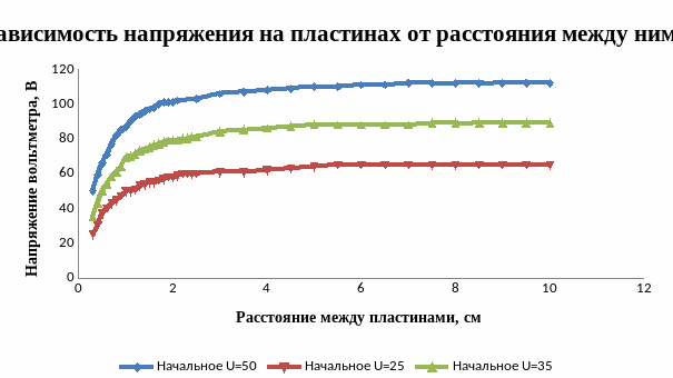 Таблица 1. Зависимость напряжения вольтметра от расстояния между пластинами