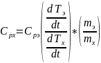 Зная теплоемкость эталона, скорости охлаждения эталона и образца с неизвестной теплоемкостью, а также их массы, можно вычислить неизвестную теплоемкость по формуле: