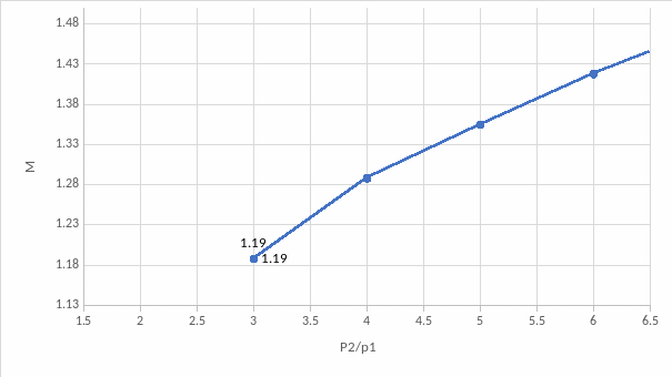 Рис 1. Зависимость Маха (М) от отношения давлений (p2/p1).