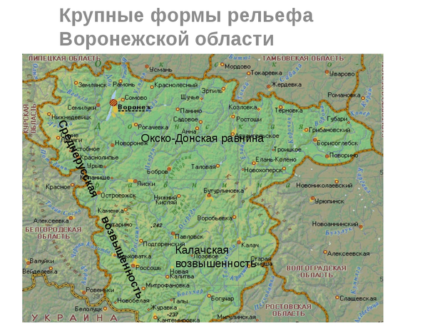 Гидрографическая сеть бедна. Единственной крупной рекой является Дон с притоками Воронеж и Северный Донец.