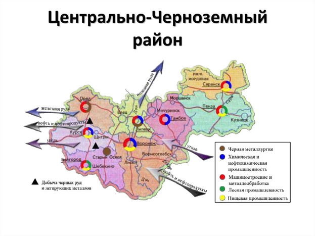 Центрально-Черноземный экономический район России отличается выгодным положением, поскольку граничит с самым развитым районом ‒ Центральным, недалеко от него находятся Поволжье и Северный Кавказ, солидные топливно-энергетические базы. Богатые массивы плодородного чернозема и железорудные запасы позитивно влияют на формирование его экономической составляющей, как и природные условия, которые отличаются умеренной континентальностью. Несмотря на некоторую засушливость, это обеспечивает высокие урожаи. Условия в целом хорошо подходят для сельскохозяйственной деятельности. Основные географическиеточки – это Окско-Донская низменность и Среднерусская возвышенность.