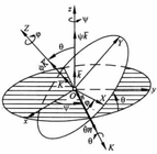 | Вопрос 16: Мгновенный центр ускорений. Способы нахождения. МЦУ – точка плоской фигуры, ускорение которой в данный момент времени равно нулю. aQ=aA+aAQ=0. Угол между aQA и QAtgα=aBAτ/aBAn=ε/ω², aAQ=√aAQτ+aAQn=AQ√ ε²+ω4 - 1 способ нахождения МЦУ: Отложить от точки А под углом α=arctg(ε/ω²) к aA отрезок AQ=aA/√(ε²+ω4 в направлении круговой стрелки ε. - 2 способ нахождении МЦУ основан на условии задачи – если ускорение какой-либо точки по условию задачи равно нулю, то эта точка является МЦУ. Ускорения точек плоской фигуры при плоском движении можно определить так же, как и при вращательном движении плоской фигуры вокруг мгновенного центра ускорений с угловой скоростью w и угловым ускорение E. В общем случае мгновенный центры скоростей и ускорений являются различными точками плоской фигуры. | Вопрос 17: Определение ускорений точек плоской фигуры с помощью МЦУ. Если МЦУ — точку Q выбрать за полюс, то ускорение любой точки А плоской фигуры , так как aQ = 0. Тогда Ускорение аА составляет с отрезком QA, соединяющим эту точку с МЦУ, угол "альфа", откладываемый от QA в сторону, противоположную направлению дуговой стрелки углового ускорения. Ускорения точек фигуры при плоском движении пропорциональны расстояниям от МЦУ до этих точек. Таким образом, ускорение всякой точки фигуры при ее плоском движении определяется в данный момент времени так же, как и при вращательном движении фигуры вокруг МЦУ. 1) Пусть известны направления ускорений двух точек плоской фигуры, ее угловые скорость и ускорение. Тогда МЦУ лежит на пересечении прямых линий, проведенных к векторам ускорений точек фигуры под одним и тем же острым углом:, отложенным от векторов ускорений точек в направлении дуговой стрелки углового ускорения. 2) Пусть известны направления ускорений хотя бы двух точек плоской фигуры, ее угловое ускорение = 0, а угловая скорость не равна 0. 3) Угловая скорость = 0, угловое ускорение не равно 0. Угол прямой. | Вопрос 18: Вращение твердого тела вокруг неподвижной точки. Углы Эйлера. Движение твердого тела, у которого одна точка неподвижна, называется сферическим. Количество степеней свободы n=3. (XA, YA, ZA). Положение тела определяется с помощью углов Эйлера. Определение: свяжем с телом подвижную систему координат Oxyz. Плоскость xOy пересекает неподвижную плоскость x1Oy1 по прямой ОК – линии узлов. Ψ – угол прецессии; φ – угол собственного вращения θ – угол нутации. Все углы против часовой стрелке. Если заданы функции Ψ=f1(t); φ=f2(t); θ=f3(t) то движение полностью определено. | Вопрос 19: Скорости и ускорения точек тела при его вращении вокруг неподвижной точки. VA=ω×rA. Пусть точка М лежит на мгновенной оси вращения. i j k VM=ω×rM= ωxωyωz XMYMZM X/ωx=Y/ωy=Z/ωz – мгновенная ось вращения. aA=dv/dt=dω/dt×rA+ω×drA/dt=ε×rA+ω×vA=aAвр+aAос. aAвр=ε×rA – вращательное ускорение точки. aAос=ω×vA – осестремительное ускорение точки. Формула Ривальса: aAoc=ωvAsin(ω, vA). aвр направлен перпендикулярно плоскости (ε,r) в сторону, откуда переход от ε к r виден против часовой стрелки. aвр направлен по перпендикуляру к плоскости (ω,v). Скоросте точек тела пропорциональны рассточниям от этих точек до мгновенной оси. |