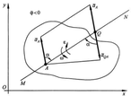 MOR0, R0, MO0, R не перпендикулярна MO – приводится к динаме. Доказательство: Разложим MO на 2 составляющих: M1 иM2. M2 представим в виде пары сил R’ и R”. Силы Rи R” уравновешиваются, а M1перенесем в точку O1 (свободы). В результате получили винт R’,M1, проходящий через точку О1. Прямая, проходящая через точку О1 – ось динамы. | Вопрос 45 (2): Инварианты системы сил. Частные случаи приведения. Инварианты в статике, такие величины, для рассматриваемой системы сил, которые не изменяются при изменении центра приведения. Виды инвариантов: 1) Векторный инвариант - главный вектор системы сил (R); 2) Скалярный инвариант. L0 * R = L01 * R L01 = L0 + O1O * R L01 * R = L0 * R + (O1O * R) * R = L0*R + (R * R) * O1O L01 * R = L0 * R Скалярное произведение главного вектора на главный момент не зависит от центра приведения. L01 * R * cosα = L0 * R * cosα L01 * cosα = L0 * cosα Проекция главного момента на шлавный вектор не зависит от центра приведения. Частные случаи приведения системы сил: 1) Приведение к паре сил. В этом случае система сил приводится к одной паре. R0 = R = 0 L01 = L0 + O1O * R 2) Приведение к равнодействующей. а) Если L0 = 0, то R = R*. Линия действия проходит через центр приведения. б) Если R≠0 , L0≠0, но R перпендикулярен L0. OY перпендикулярен (L0,R) d= L0 / R = OO1 | M01(R) | = d * R = L0 Отбросим (L,M0(R)), т.к. ~0 и останется R*. Плоская система сил всегда может быть приведена к равнодействующей. -