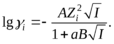 Здесь B – параметр, который зависит от температуры и природы растворителя, а – минимальное расстояние, на которое могут сблизиться центры катионов и анионов. В водных растворах при 25 С произведение aB 1 М–1/2. Зависимость, описываемая уравнением (3.6), называют вторым приближением теории Дебая – Хюккеля.