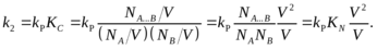 может быть выражена через константу скорости второго порядка k2 или через константу скорости стадии приводящей к образованию продукта kр и константу равновесия KС. Будем считать, что реакция происходит в газовой фазе и размерность концентрации [молекула/см3].