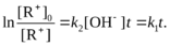 Если [OH–] >> [R+], то k2[OH–] = k1 const: