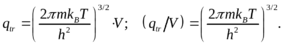 Поскольку любая частица в газе имеет три поступательные степени свободы, удобно разделить на объём именно поступательные вклады qtr в статсуммы каждой частицы