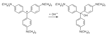 Рис. 3.1. Взаимодействие красителя кристаллического фиолетового со щёлочью