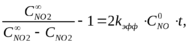 где kэфф = k3Cкисл, k3 – константа скорости третьего порядка, Cкисл – концентрация кислорода.