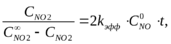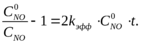При расчёте порядка реакции можно не вычислять в явном виде концентрацию NO, а использовать пропорциональную ей величину (D – D).