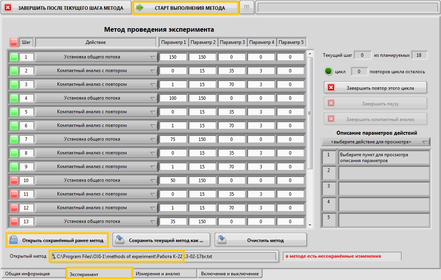 В окне «Эксперимент» нажать «Открыть сохранённый ранее метод» и выбрать метод записи хроматограммы «Работа К-22».