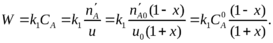 Остаётся установить вид зависимости W от x и провести интегрирование. Интересно сопоставить это уравнение с уравнением (8.5) для реактора полного смешения.