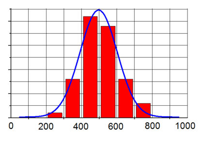 Если разброс данных носит случайный характер то, по мере увеличения количества измерений, вершины столбиков над каждым интервалом ложатся на красивую колоколообразную кривую, которая описывается функцией