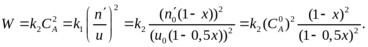 Теперь нужно выразить скорость реакции W через степень превращения, используя закон действующих масс: