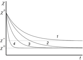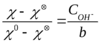 Если этилацетат взят в недостатке или начальные концентрации щёлочи и этилацетата равны, то формула (1.10) также применима для расчёта текущей концентрации щёлочи, однако для её использования необходимо в параллельном опыте измерить величину