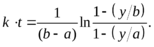 Как видно из уравнения (1.4), для расчёта константы скорости нужно знать начальную концентрацию щёлочи b, начальную концентрацию этилацетата a и зависимость глубины реакции y от времени: