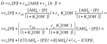 Оптическая плотность раствора, в котором протекает реакция гидролиза AH, в момент времени t равна