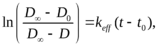 Для определения величины константы скорости k при разных температурах можно использовать приближённые методы. Они хотя и дают менее точные результаты, чем аппроксимация экспериментальных данных уравнением (2.37), однако позволяют провести быструю оценку кинетических параметров.