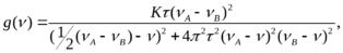 где g(ν) – интенсивность сигнала на частоте ν, K – нормировочная константа, νA и νB – положение линий в спектре ЯМР, k – константа скорости обмена,