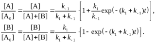 Равновесные концентрации связаны с константами скорости k1 и k–1 простым соотношением