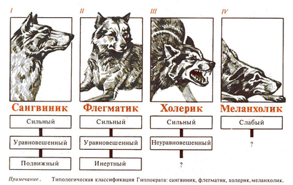 Выделенные типы Павлов считал общими и для человека и животных. Он показал, что четыре установленных типа совпадают с гиппократовским описанием четырех темпераментов человека - холерическим, сангвиническим, флегматическим и меланхолическим.