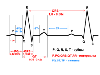 Общая продолжительность электрической систолы желудочков (Q—T) почти совпадает с длительностью механической систолы (механическая систола начинается несколько позже, чем электрическая).