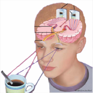 Контрлатеральная адресация зрительной информации из левого (в правое полушарие) и правого (в левое) полей зрения