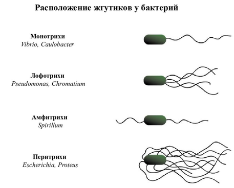 Жгутики – орган движения бактерий. Нитевидные структуры белковой природы (флагеллин).