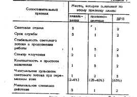 Сравнительная оценка ламп накаливания, люминесцентных ламп и ДРЛ дана в табл.2.3.1