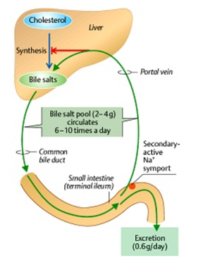Рисунок. Энтеропеченочная циркуляция желчных кислот.