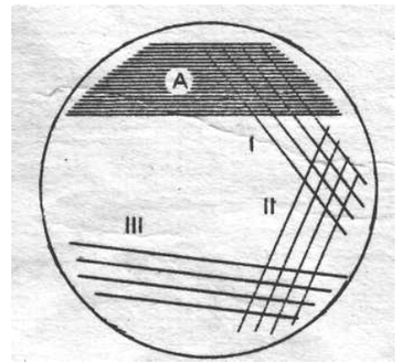 Метод секторных посевов. Петлей диаметром 2мм, емкостью 0,005 мл, производят посев материала (30-40 штрихов) на сектор А чашки Петри с питательным агаром. После этого петлю прожигают и производят 4 штриховых посева из сектора А в сектор I и аналогичным образом - из сектора I во II и из II в III. Чашки инкубируют при 37 С 18-24 часа, затем подсчитывают число колонии, выросших в разных секторах.