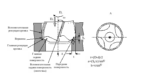 Изобразите режущую часть зенкера и сечение срезаемого слоя при зенкеровании.