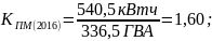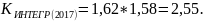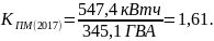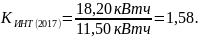 Коэффициент интенсивного использования в 2016 году по сравнению с 2015 годом увеличился. Прирост составил 2,5%, что говорит об устойчивом потреблении в разрезе годового выпуска продукции потребителем. В 2017 году коэффициент снизился на 1,3%, что отрицательно повлияло на выпуск продукции.