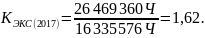 Коэффициент экстенсивного использования оборудования | 1,61 | 1,62 | 1,62 | 100,1 | - |