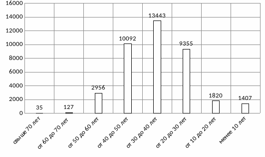 Состояние основных фондов характеризуется сроком использования оборудований. Возрастная структура турбинного оборудования ТЭС России представлена на рисунке 3.