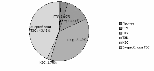 Рисунок 2 - Структура установленной мощности ТЭС ЕЭС России