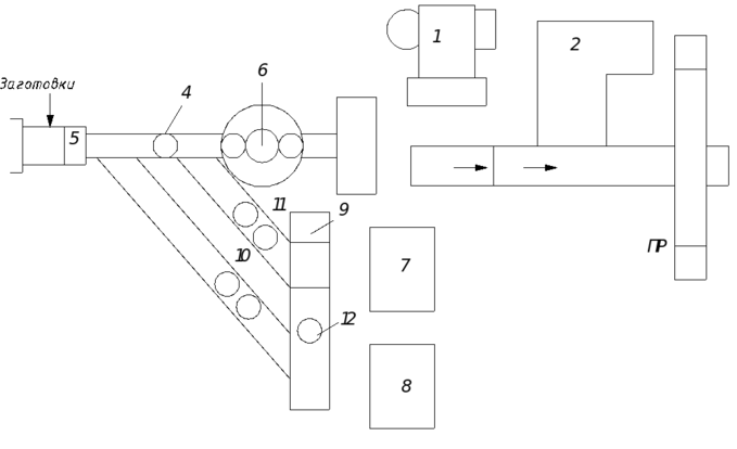 4 – конвейер; 5 – конвейер-накопитель; 6 – входной контроль; 7 – конвейер входного контроля;