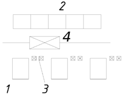 5 – самоходная тележка, осуществляющая связь технологического участка со складским.