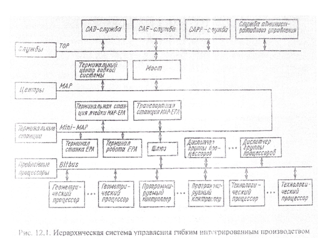 Рис, 12.1. Иерархическая система управления гибким интегрированным производством